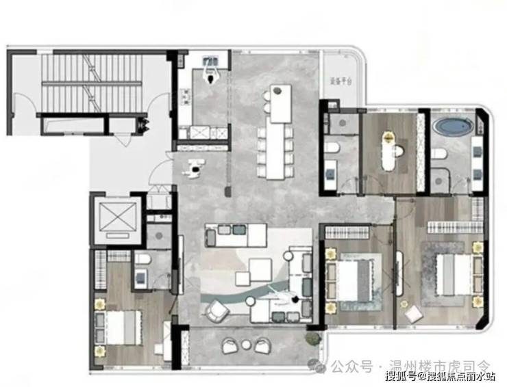 4.朝南总统级双套房 | 功能复合,带独立卫生间、衣帽间,更为私密,体现尊贵感的同时,展现个性十足的空间造型