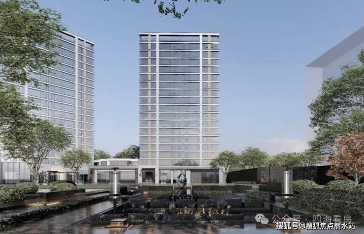 ②比肩一线城市豪宅的公建化立面形象:类公建现代都市颜大面积玻璃幕,搭配金属铝板和真石漆涂料,使得整体建筑大气简洁与线条流畅,建筑现代都市感气息浓郁。