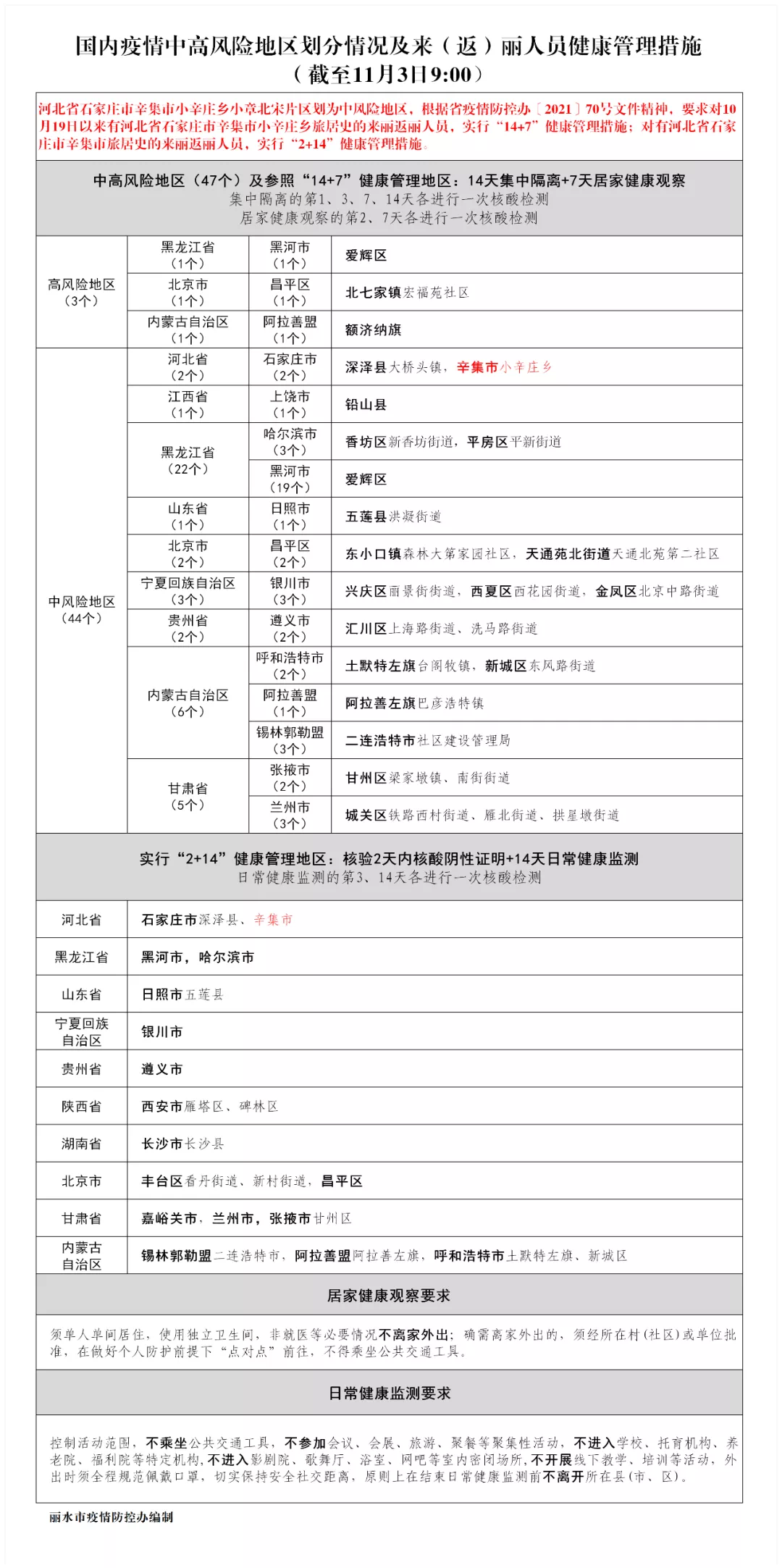 今天上午,市疫情防控办更新了国内疫情中高风险地区划分情况及来(返)丽人员健康管理措施。