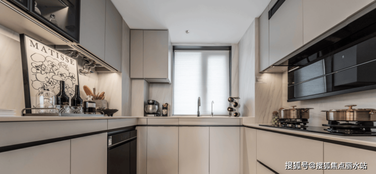 厨房,美国A.O史密斯的直饮水机,水槽和龙头选用瑞士弗兰卡,与北京壹号庄园、上海外滩壹号院等顶豪同款。