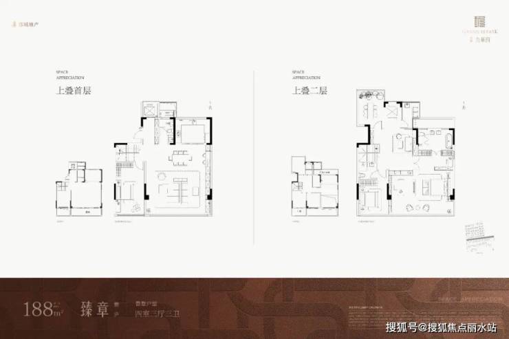 👇 建面约188m²上叠户型示意图: