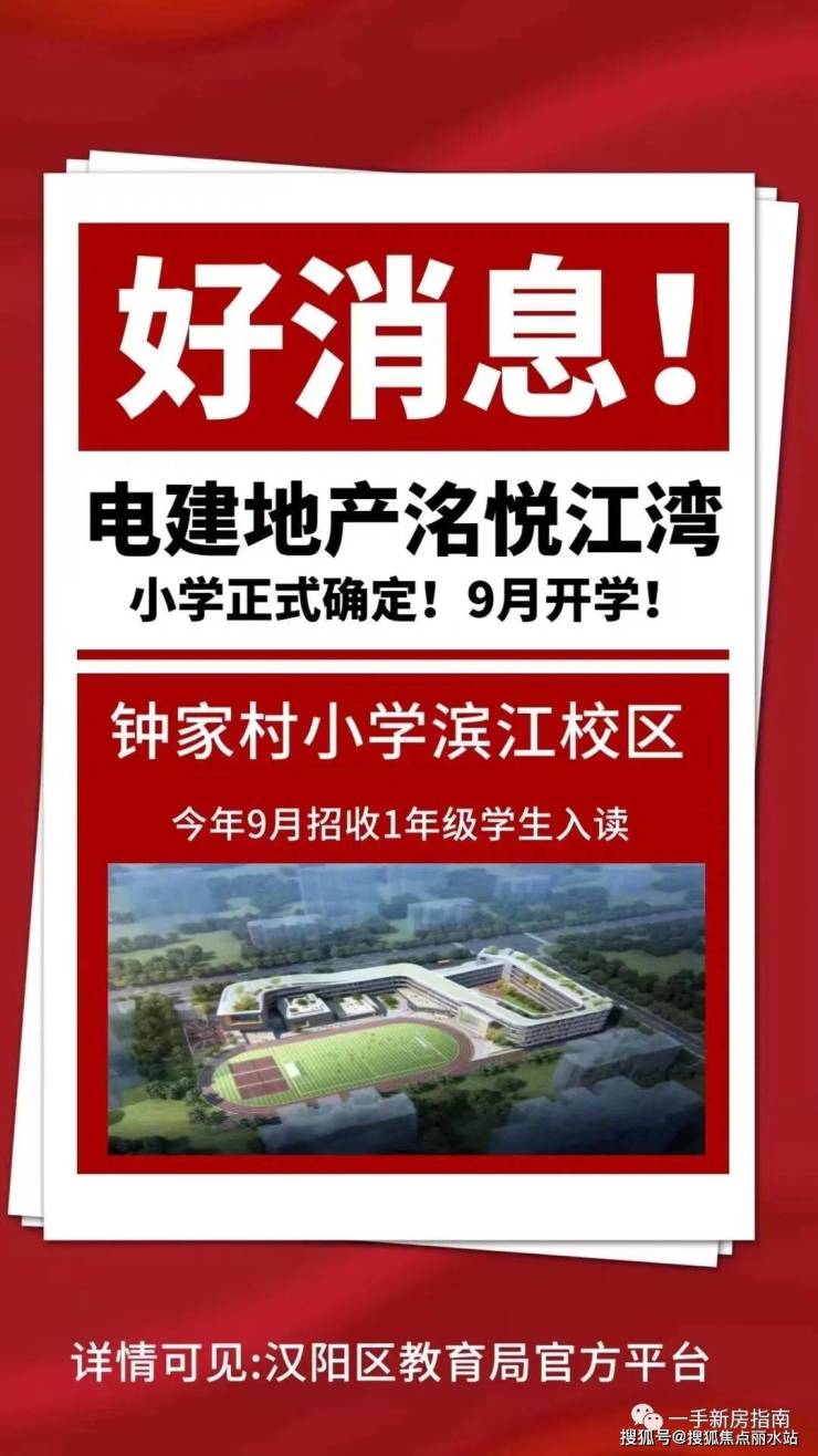 电建地产·洺悦江湾将打造0-15岁目送式全龄教育资源。自建一所12班幼儿园;作为唯一代建方签约钟家村小学(汉阳排名第一的公立小学)分校区,斥资2.3亿元,建设总面积约3万方、30个班制的区域内首个未来教师管理系统的智慧校园,洺悦江湾业主将拥有“优先入读权”。同时中学也在片区规划中。