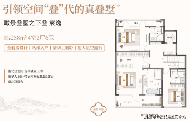 叠拼与联排产品:南北双露台、全套房设计、精细化动线规划,可以服务多代家庭,即便是老人、孩子、家政都有各自的私属空间。