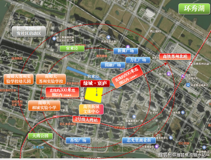 北侧:坐拥环秀湖、圆融广场与高铁苏州北站,都会繁华与自然湖境和谐共生。