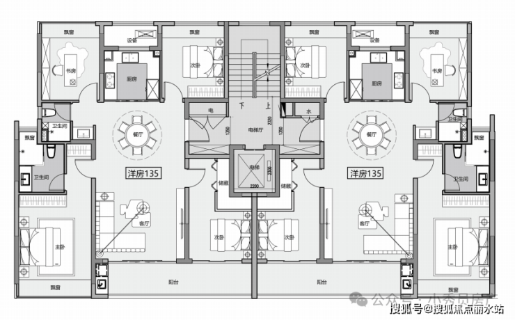 135㎡做成了极致四叶草户型,南向三开间