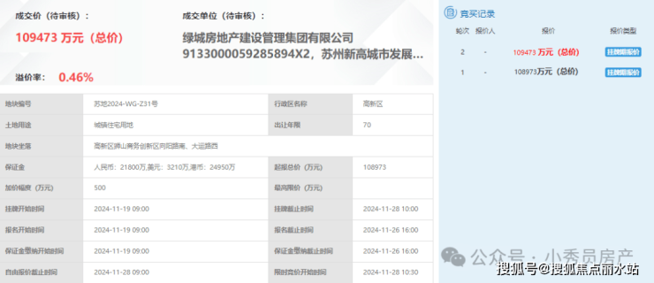 以楼面价约25115元/㎡拿下(溢价0.46%)