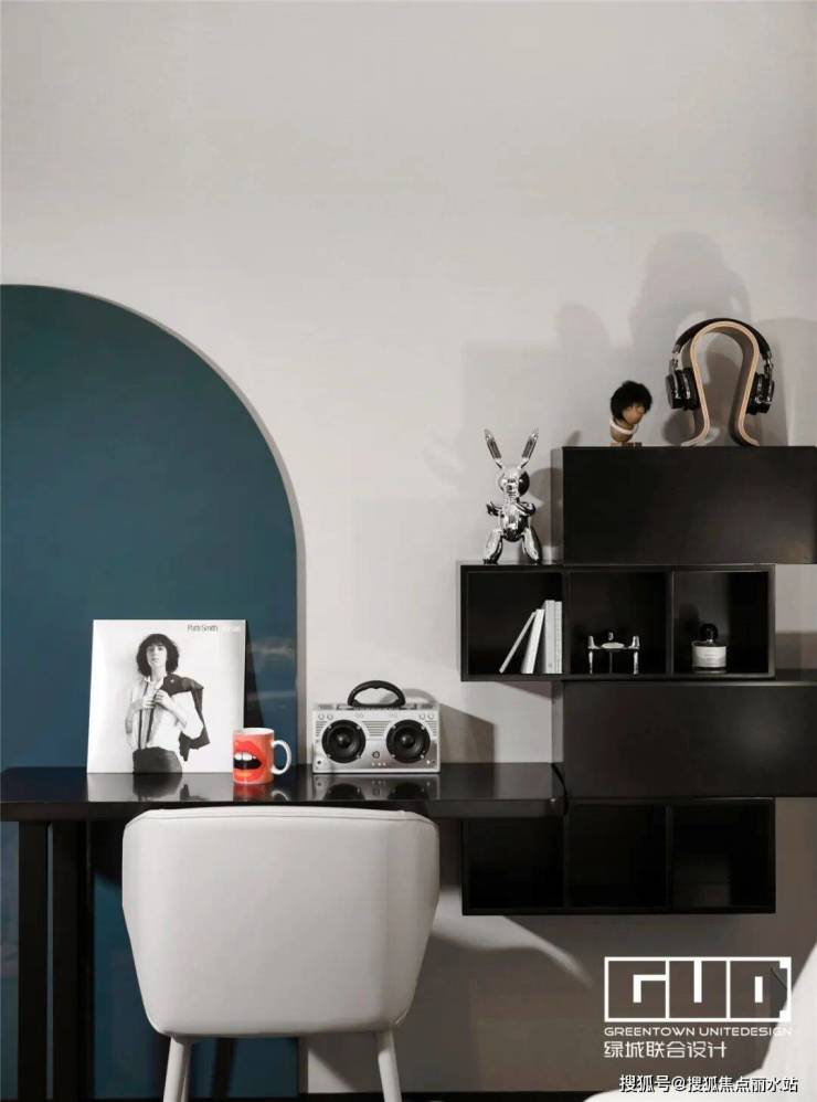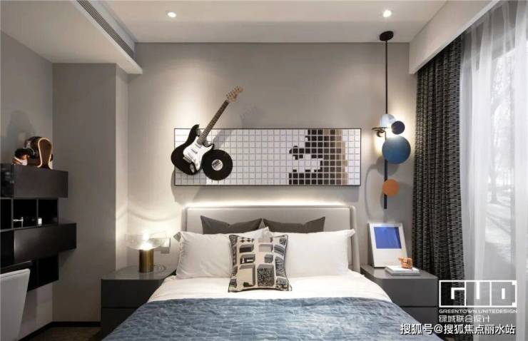 儿童房的设计,采用大量的音乐元素,描绘出一个个性与真实结合的场景,赋予空间以情感寄托,孩子单纯的热爱展露无遗,无论吉他或是黑胶唱片,还是潮牌的公仔玩偶,都是对孩子最好的爱的诠释。