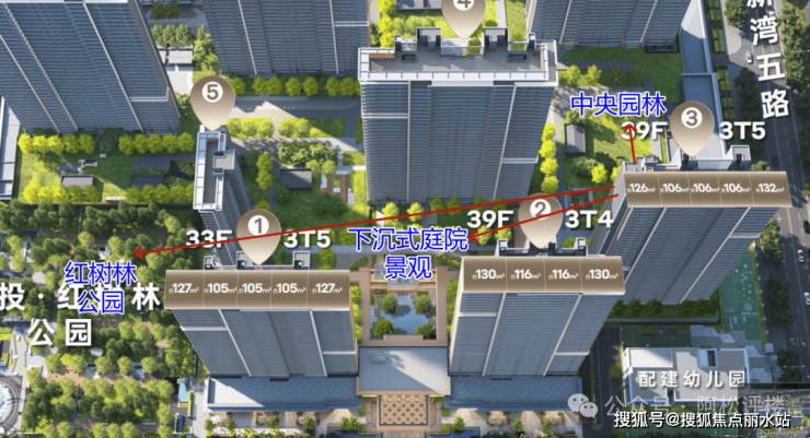 项目3号楼南向几乎无遮挡,且西面户型可看下沉庭院及水杉林公园,北侧俯瞰内部园林景观,视野和景观都相当不错!