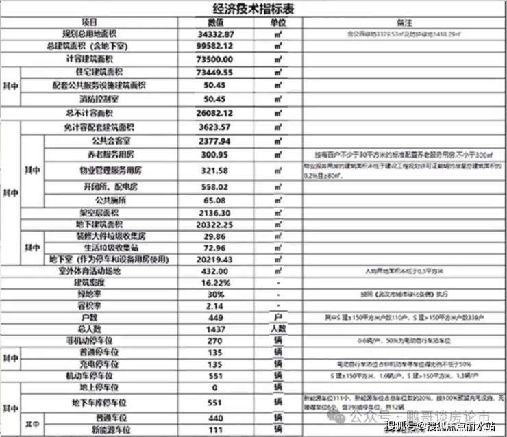武汉邦泰璟和规划总用地面积34332.87㎡,总建筑面积(含地下室)99582.12㎡。计容建筑面积73500.00㎡,住宅建筑面积73449.55㎡,配套公共服务设施建筑面积50.45㎡。总不计容面积26082.12㎡,免计容配套建筑面积3623.57㎡,公共会客厅2377.94㎡,养老服务用房300.95㎡,物业管理服务用房321.58㎡,开闭所、配电房558.02㎡,公共厕所65.08㎡。架空层面积2136.30㎡,地下建筑磨面机20322.25㎡。室外体育活动场地432.00㎡,建筑密度16.22%,绿地率30%,容积率2.14,户数449户,总人数1437人。非机动车停车位270个(含充电车位135个),机动车停车位551个(含新能源车位111个)。