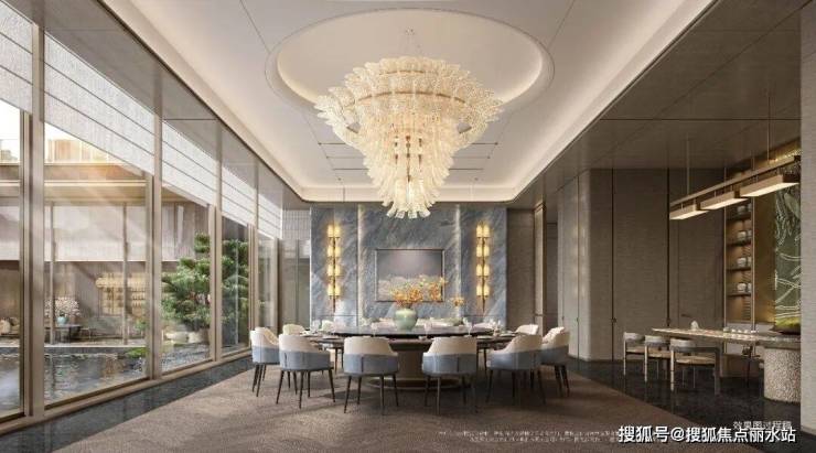 下沉庭院会所打造壮观的银河飞瀑,与园外奔流的瓯江遥相呼应,壮丽飞瀑与静谧庭院巧妙结合,创造出沉浸式感官体验。