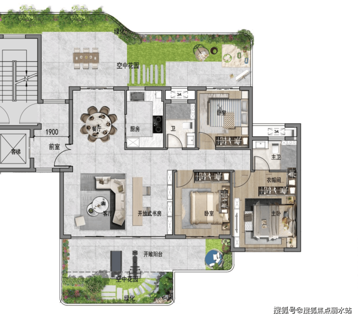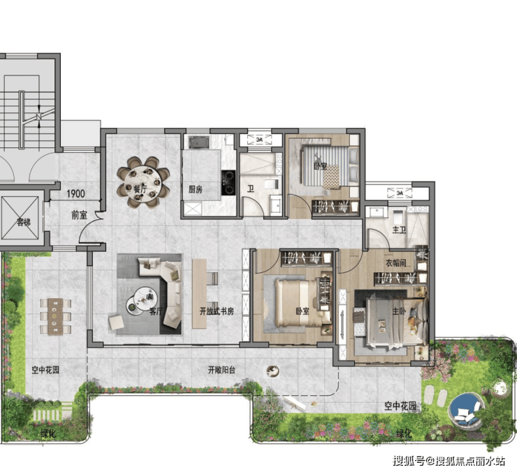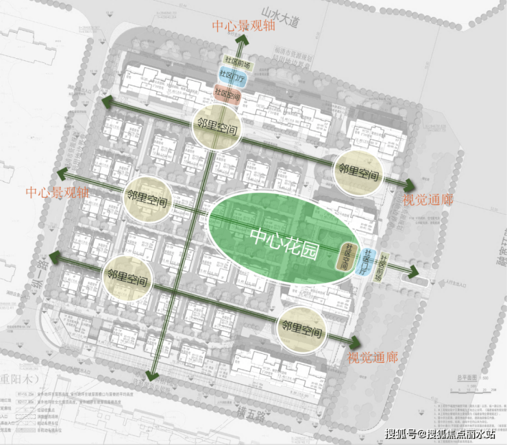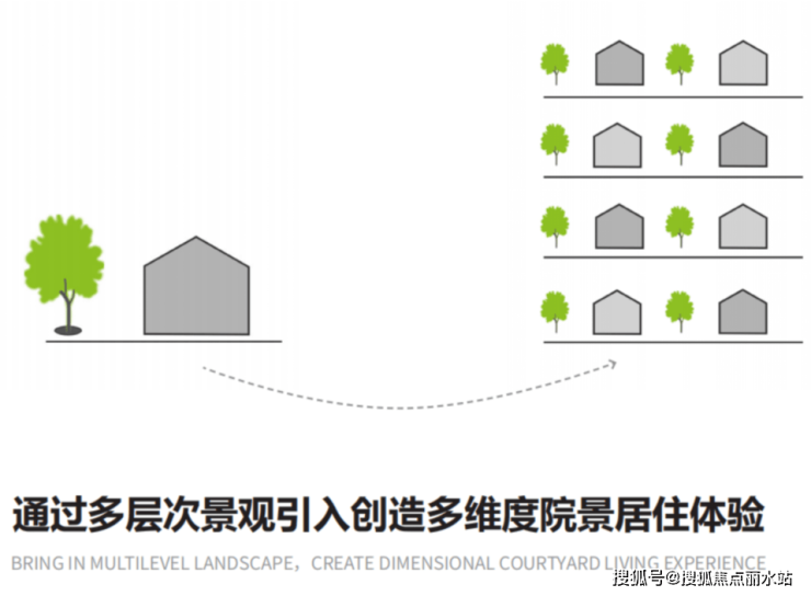 空 中园林街巷: 设置层高不小于两个自然层高,供业主共享的开敞式公共休闲绿化平台。南北向、奇偶层错位设置大进深实现空中园林街巷的空间价值。不计容不计产权。建筑间距及退距:两种绿化平台均不计算建筑间距及退距。