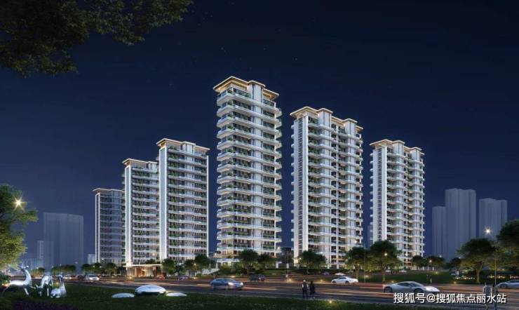 立面材质以玻璃、石材有机结合,与绿色植被包裹相容,呈现晶莹质感,勾勒出富有层次感的线性语言,打造精致高品质的人居社区,内敛而不张扬,宁静且有温度。夜景灯光对建筑立面重要细部结构进行刻画,既强调了建筑本身的个性特征,又保证了其与周边环境的整体协调 ,无论远眺或是近观,都别有一番风情。
