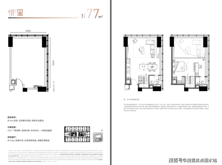 其中,悦玺塔楼4-31层为LOFT公寓,共有约728套,层高约为4.95米。悦玺房子呈“回”字型分布,北区、东区和西区中高层部分房源拥有1.5线看江视野。