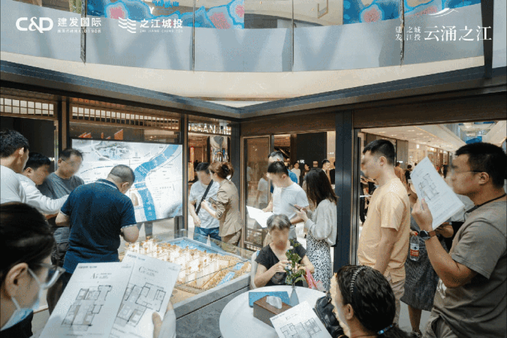 开放仅两日到访量超1800组,现场人潮涌动,只为一睹云涌之江实景展示区的璀璨盛景。处处可感受到精雕细琢的匠心之意,品质与美感兼顾,细腻的工法、考究的细节、严苛的选材,营造出温馨的空间感受,让每一位来宾都与之产生美好共鸣。