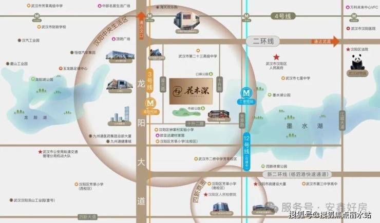 地铁:项目到地铁3号线龙阳村站直线距离约为300多米,到地铁12号线丁家咀站直线距离约为300多米(预计2026年3月开通),到地铁4号线十里铺站直线距离约为1.2公里。