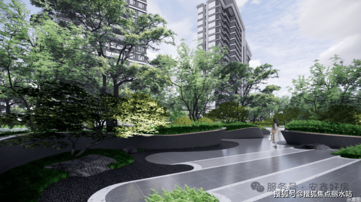 项目采用公建化外立面,构建绿岛归家大堂/入户门,还打造了泛会所(含瑜伽室&健身房等)和林下私家花园。
