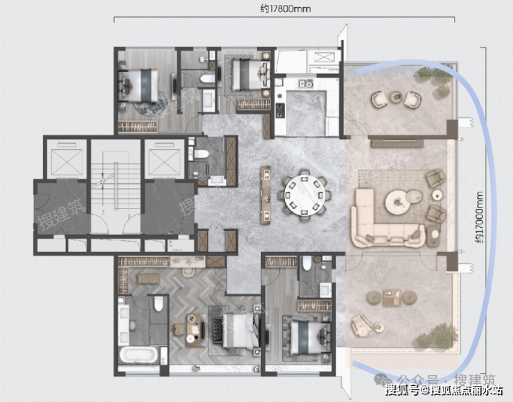 这个户型,不仅拉高了170㎡户型面积段的产品天花板,更成为行业内一次重要的次产品输出和创新。