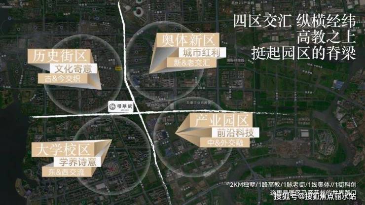 项目自诞生起则自带「文化大宅」基因。择址独墅湖大道和星塘街交汇处,纵横经纬之间,将土地划分四个区域——向上,古今文化交织、新老地标交汇;向下,东西学府交融、中外企业交流。