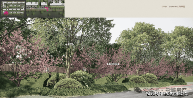 不同于过去小区的头排楼座,楼下通常就是一个光秃秃的围墙,保利学府21号楼楼下,可以说景观优势,也是非常强大!惊喜打造了一片樱花组团景观。