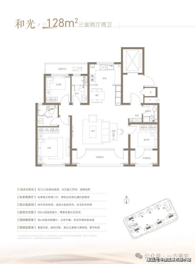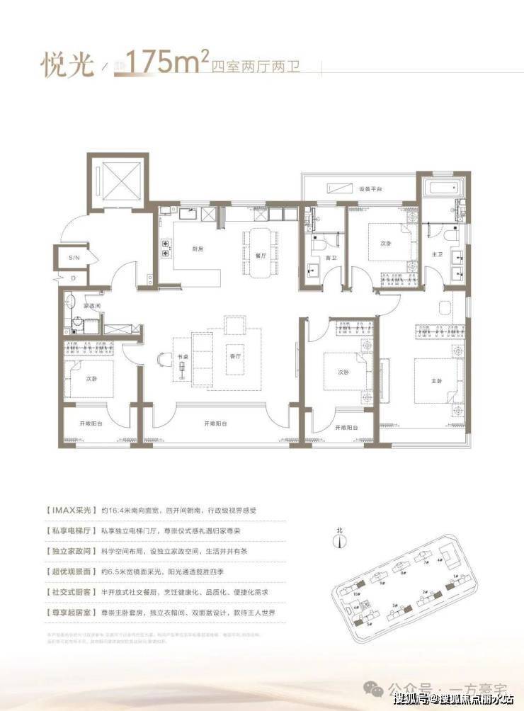 南向IMAX极目面,打造阔境舒适体验,精研户型方正通透,光幕大横厅设计,为南向宽敞阳台打造广角瞰景视野;科学精研人性化空间布局,打造独立家政空间,系统门窗、悬浮马桶等高标准交付。
