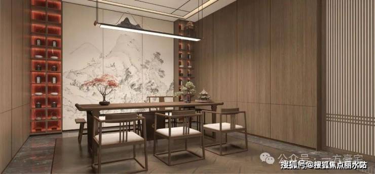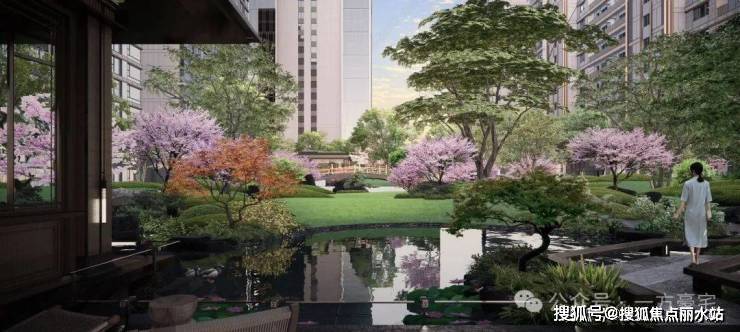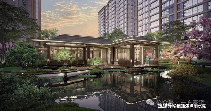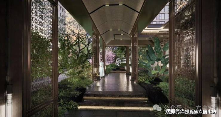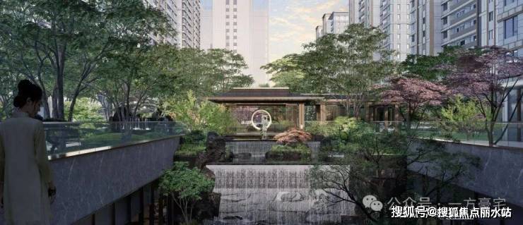 项目采用围合式造园,打造1.5万方东方美学生活院落,以中式园林为引,采苏州“拙政园”灵感,东密西疏、移步易景,构建一条中心景观五进归家礼仪,三大会客厅,四大宅间生活美学体验区,九个主题游园,尊享体验归家动线。