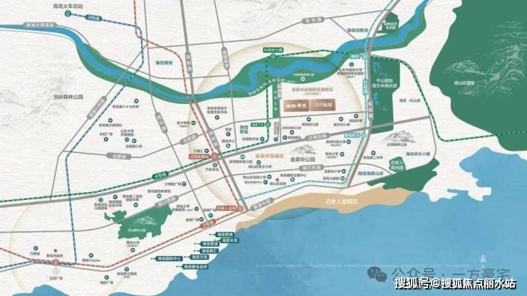 2.周边:万象汇商圈、宜家家居、万象汇、毗邻两所三甲级医院,青医附院崂山院区、山东中医药大学附属医院青岛院区(在建中已封顶,距离项目1.3公里,开车2分钟以内到达 )