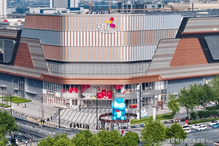 简约时尚的建筑立面,以“珍珠蓝石材”为基座,主体为大面积玻璃+铝板线条,加之形似“博士帽”的新中式屋顶,颜值耐看又寓意美好。