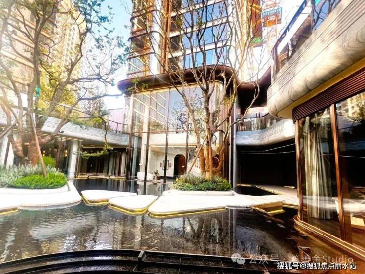 复刻《江汉揽胜图》精髓,引水入园,精心打造全龄社交场景与多维垂直园林,实现“一步一景一社交”的沉浸式归家体验,让每一步都穿越艺术与自然的双重魅力。宝格丽绿奢石墙之上,垂直叠瀑倾泻而下,形成4米壮丽水幕,溪水潺潺汇入安哥拉黑池底,化作灵动玉带。漂浮汀步巧妙衔接会所内外,既震撼视觉,又串联空间。30年乌桕树王伫立庭院,守护一方宁静,每一块玉石铺装皆蕴含《周礼》六器礼序,将“水与玉”的东方哲思融入日常步履之间。