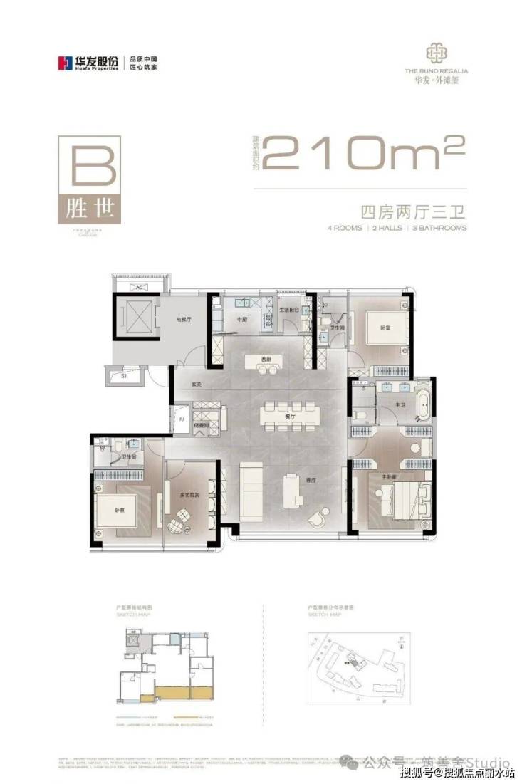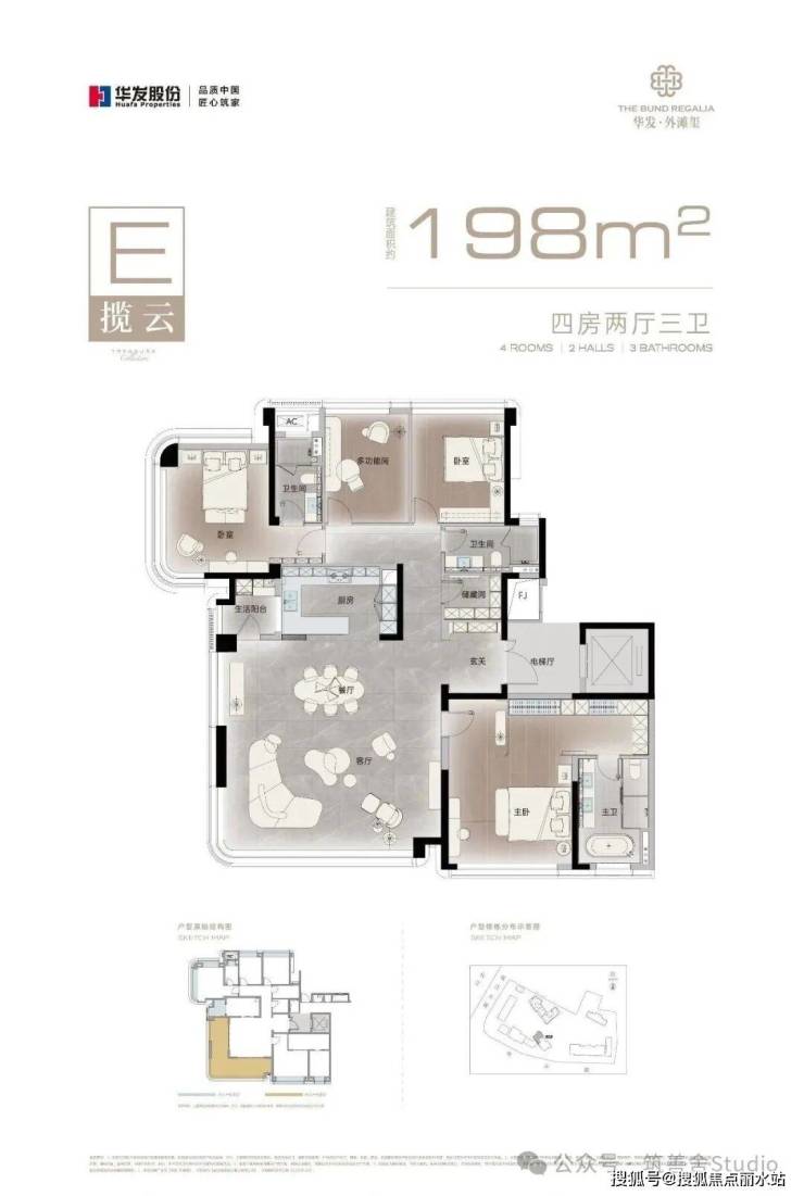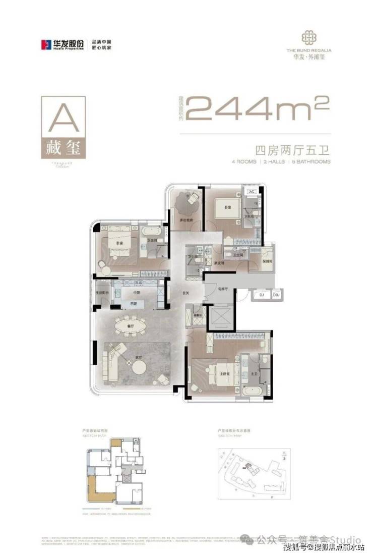 华发外滩玺,容积率仅2.98,建筑高度22-28层,是武汉长江两岸核心江景房中罕见的低密度、高舒适度项目。项目主推建面约159-244㎡大平层,综合使用率高达95%-103%,部分房源实现负公摊,且每户均配备独立电梯厅。