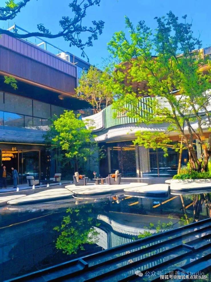 60米宽、高约 6 米的恢弘大门,深谙东方礼序之精髓,取意安达仕酒店对称仪式感,两侧各植 3 棵名贵铁冬青,气势恢弘,以现代建筑美学为笔,勾勒出庄重而典雅的归家之道。精选名贵树种,列阵相迎,步道临水,为您铺展一条尊崇的归家仪仗,每一步都彰显非凡品味。