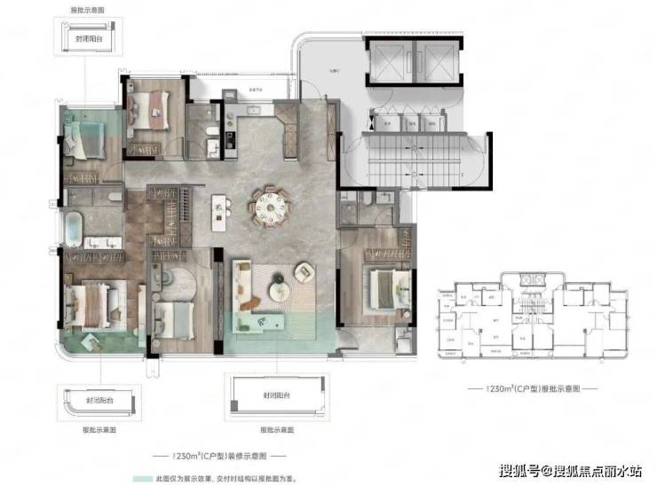185㎡和230㎡则更注重奢适空间的表达,比如主套房的浴缸、双台盆以及步入式衣帽间等配置,符合当下改善群体的普遍需求。