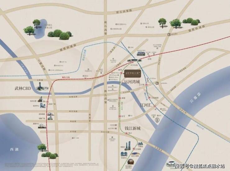 区位上,项目位于城东新城板块,紧邻杭州东站,出行效率是最大优势。距离地铁4号线新风站仅约50米,换乘1号线、6号线、19号线都较为便利。