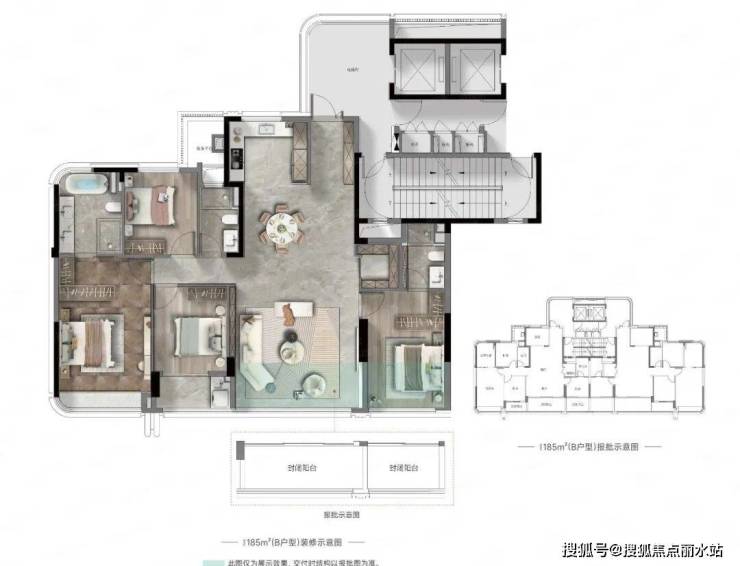 项目主力户型集中在161㎡、185㎡和230㎡,均为大平层改善定位,全部为两梯两户设计,保证了居住舒适度。