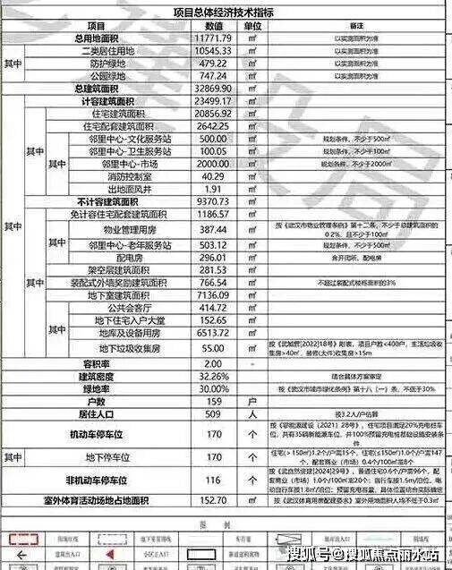 项目总用地面积约1.18万方,总建筑面积约3.29万方,计容建筑面积约2.35万方,住宅建筑面积约2.09万方,容积率2.0,户数159户,机动车停车位170个,车位配比1∶1.07。