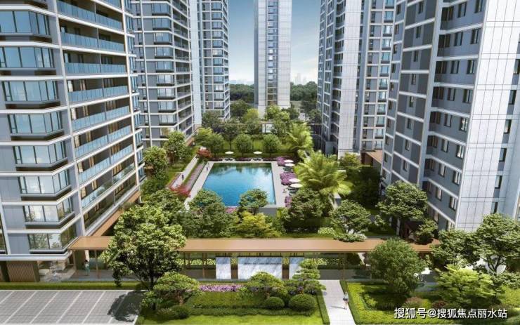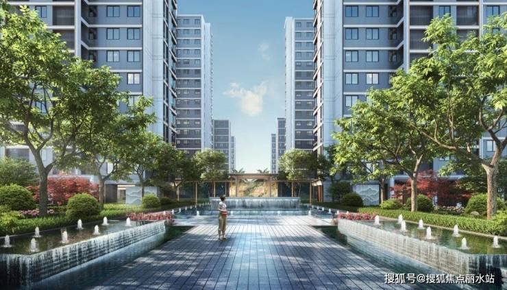 小区中庭打造了约400㎡的中央水池,仿佛一颗闪亮的蓝宝石。这不止是一处景观,更是一个社区生活的活力核心。