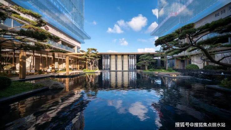 呈现在眼前的不仅是水光树影,更是一个水院衔接大堂,再衔接一个庭院的「空间纵深感」,这些都转化成了场景的浓稠和视觉的连贯性。