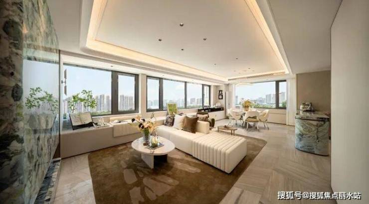 值得一提的是,其外立面很有封面感 ,大面积玻璃搭配铝板,南向超高窗墙比设计,呈现出公建化的颜值 ,高雅简约。