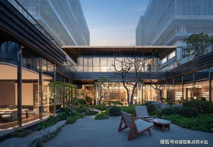 花重金四面玻璃设计,化作很美的「取景框」,对望水院和下沉式庭院。