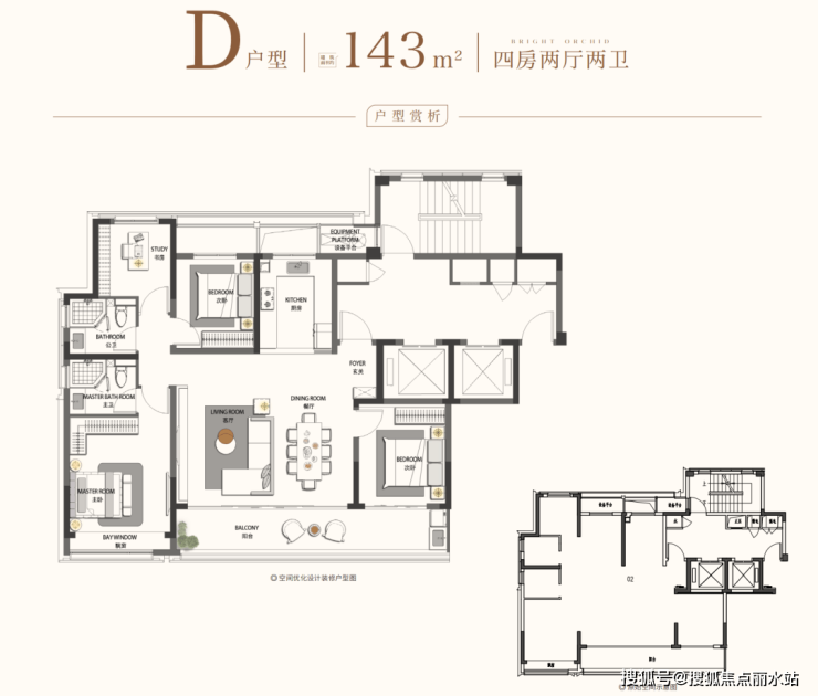 ①堪称“百变空间魔法师”,可做四房或可变成三房,如果变成三房,大厅的侧面面宽高达8.5米,通透明亮。