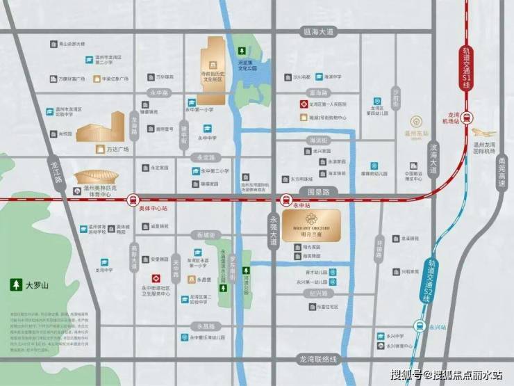 在温州城市东进方向上,以明月兰庭所在的S1线永中站这里为原点,向外辐射,涵盖空铁枢纽片区和万达商圈。