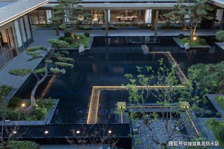 「一轴两环十境」布局,沿着“玉兰门仪—水院—下沉式庭院—景观水池”四进制的路径:一步一景一画卷,移步换景画中游。