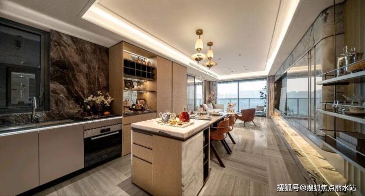 还嵌入了一个卡座,让业主愿意停留,沉浸其中:水韵温润,美如画境。