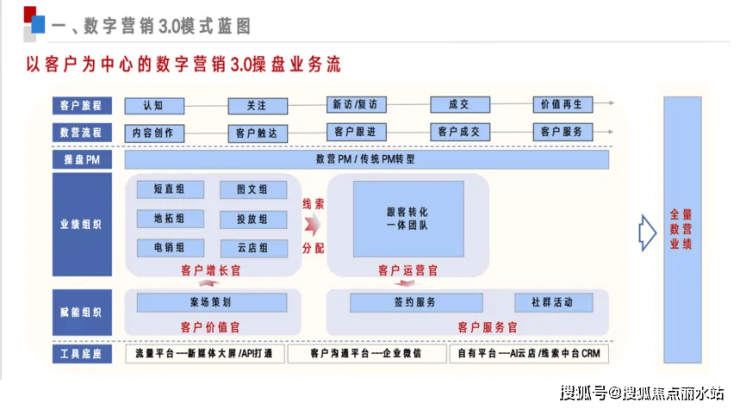 由此,全链路单盘主义成为联发数字营销 3.0 模式的核心方法论,其本质是围绕 “单盘” 这一价值创造单元,通过技术打通 “业务 - 组织” 全链路,实现从获客到运营的高效协同,核心逻辑可概括为 “业务和工具是手段,组织是目的”,具体体现在三大维度: