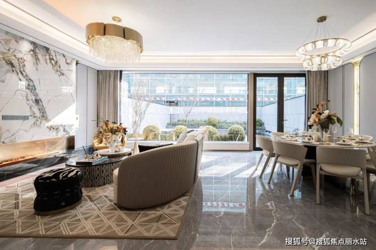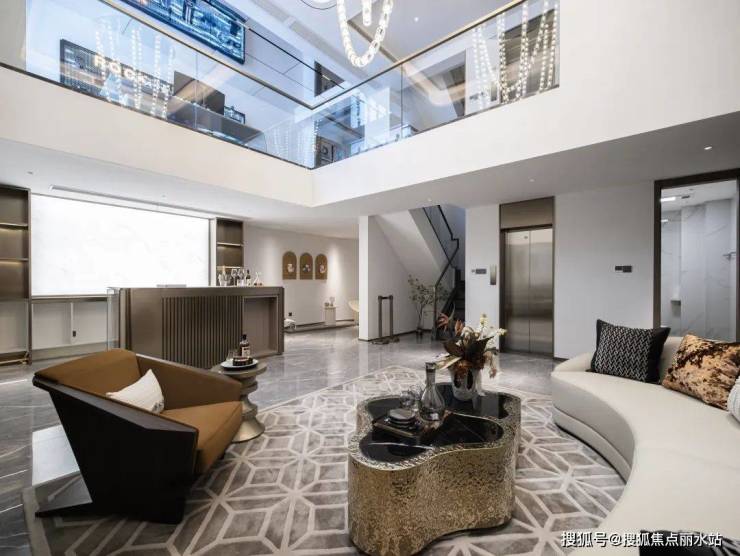 摆上一组沙发,或静坐闲读,或花园晚餐,或邀三五好友欢聚,都有一种悠然自得的安定感。长面宽、短进深格局 来到室内,一楼层高约3.4米、面宽约7米大横厅霸气十足,搭配大面落地窗,阳光清风肆意涌入,将室内映衬的一片明亮,毫无阴影死角。