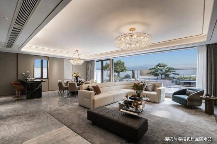 走进翠璟和庄,首层餐客厅的全景落地窗设计令人眼前一亮,窗墙比超过80%,仿佛为室内空间装上了一扇“一体无界屏”,将室外的风景毫无保留地引入室内,让自然光线与室内空间完美融合,营造出开阔而通透的居住氛围。约5.8米挑高地下空间,可自由打造夹层,满足多元生活需求。