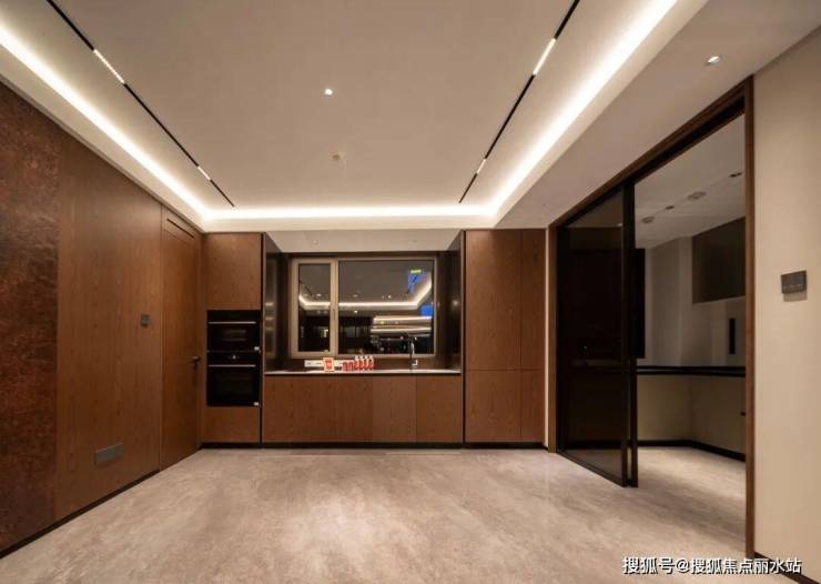 项目打造的是科技住宅,采用毛细管网系统,地送顶回的置换新风方式,电视背景墙交付,厨房配置博世7件套,阳台上的洗衣机、烘干机、家政柜、晾衣架、台盆及龙头,也都是装修标准