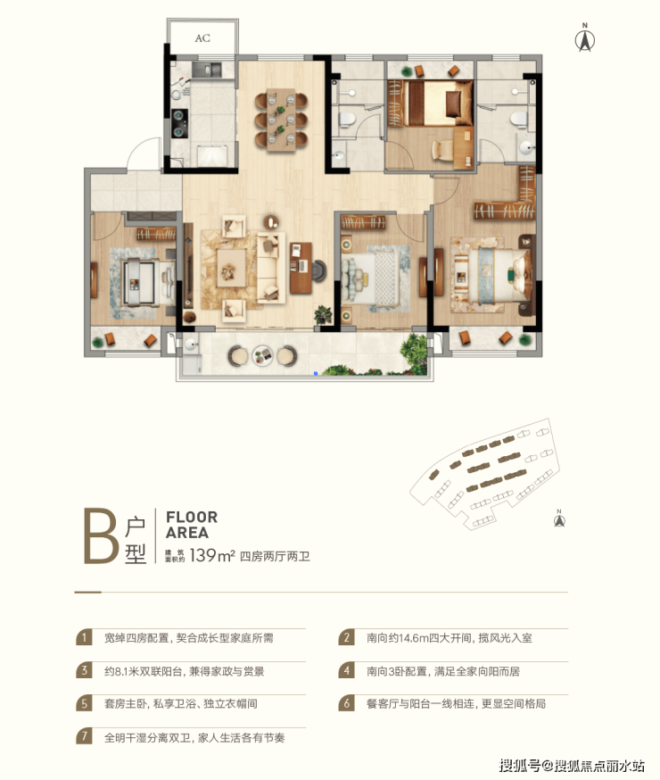 B户型 建筑面积约139㎡ 四房两厅两卫