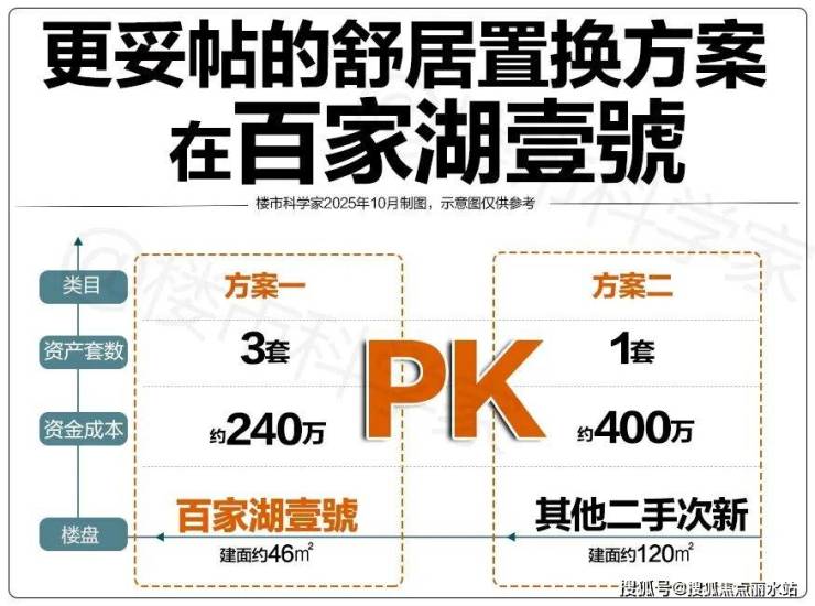 在百家湖,即便是购置一套建面约120㎡的二手次新,总价也要近四百万;而在百家湖壹號买2-3套小户型公寓只需要一半的成本,是与老人分巢等的不二之选。