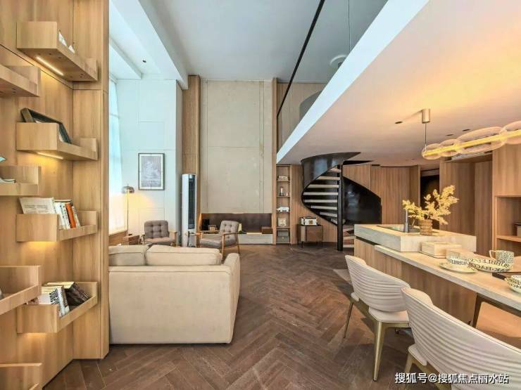 下层生活、社交,甚至办公都游刃有余,上层休憩,双重格局打开,功能加倍,互不影响,超级nice!