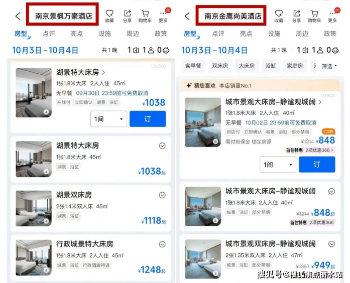 参考国庆期间,南京酒店供不应求,景枫万豪酒店价格多数高达700-800元/晚,最高的甚至过千元,而金鹰尚美酒店价格约为在600-900元/晚不等,百家湖壹號的前景亦非常可期。